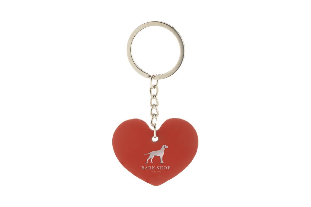 Szív alakú, újrahasznosított rozsdamentes acél kulcstartó gumírozott felülettel.